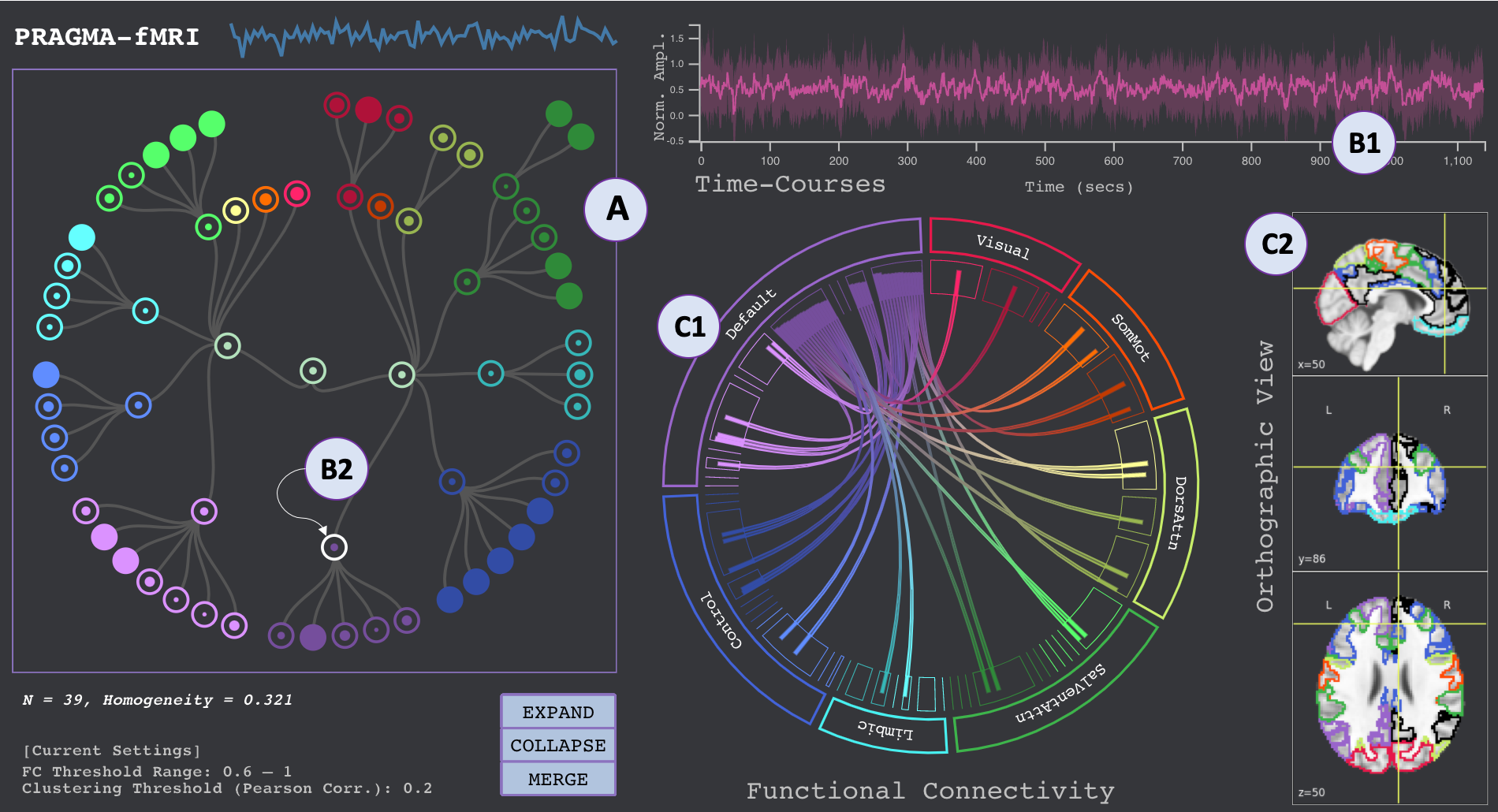 A user study with four neuroimaging experts demonstrated that PRAGMA can support exploration of individualized and state-specific functional brain organization, offering new insights into functional brain networks.